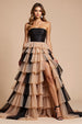 Schwarzes und Rosa A-Linie Ballkleid aus Tüll mit Schlitz