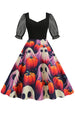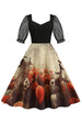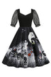 A-Linie Schwarzes Vintage Kleid mit Halloween Druck