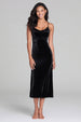 Schwarzes Spaghettiträger A-Linie Samt Abendkleid