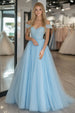 Spitze Tüll A Linie Himmelblaues Schulterfreies Ballkleid