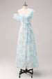 Stilvolles A-Linie Weiß Blau Blume Chiffon Brautjungfernkleid mit Schlitz
