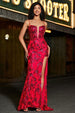Meerjungfrauen Spaghettiträger Dunkelrotes Korsett Ballkleid mit Schlitz