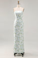 Trägerloses Bedrucktes Weißes Blaues Etui Brautjungfernkleid mit Blumen