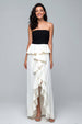 Trägerloses Schwarz-weißes Rüschen Ballkleid mit Schlitz
