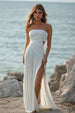 Trägerloses Weißes A-Linie Boho Strandkleid mit Schlitz