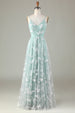Tüll Spaghettiträger Matcha Brautjungfernkleid mit Applikationen