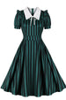 Vertikal gestreiftes Revers Ausschnitt Halloween Kostüm 1950er Jahre Kleid