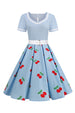 Rockabilly Kleid mit schwarzem V-Ausschnitt und kurzen Ärmeln