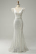 Weiße Pailletten V-Ausschnitt Meerjungfrau langes Ballkleid mit Federn