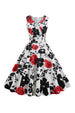 Weißes ärmelloses Vintage Kleid mit Blumendruck