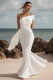 Weißes Einschultriges Gerafftes Meerjungfrauen Standesamtkleid