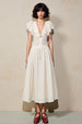Weißes Kleid für Hochzeitsgäste mit V-Ausschnitt und Rüschenärmeln in A-Linie
