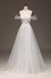 Weißes schulterfreies A-Linie Korsett Ballkleid mit Applikationen