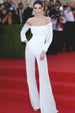 Weißes Schulterfreies Chiffon Galakleid Jumpsuits mit langen Ärmeln