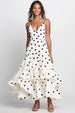 Weißes Schwarzes Punkt Rüschen A-Linie Kleid für Hochzeitsgäste