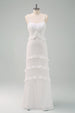 Weißes Spaghettiträger Meerjungfrauen Langes Ballkleid mit Rüschen