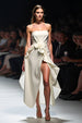 Weißes A-Linie Trägerloses Gerafftes Galakleid mit 3D-Blume